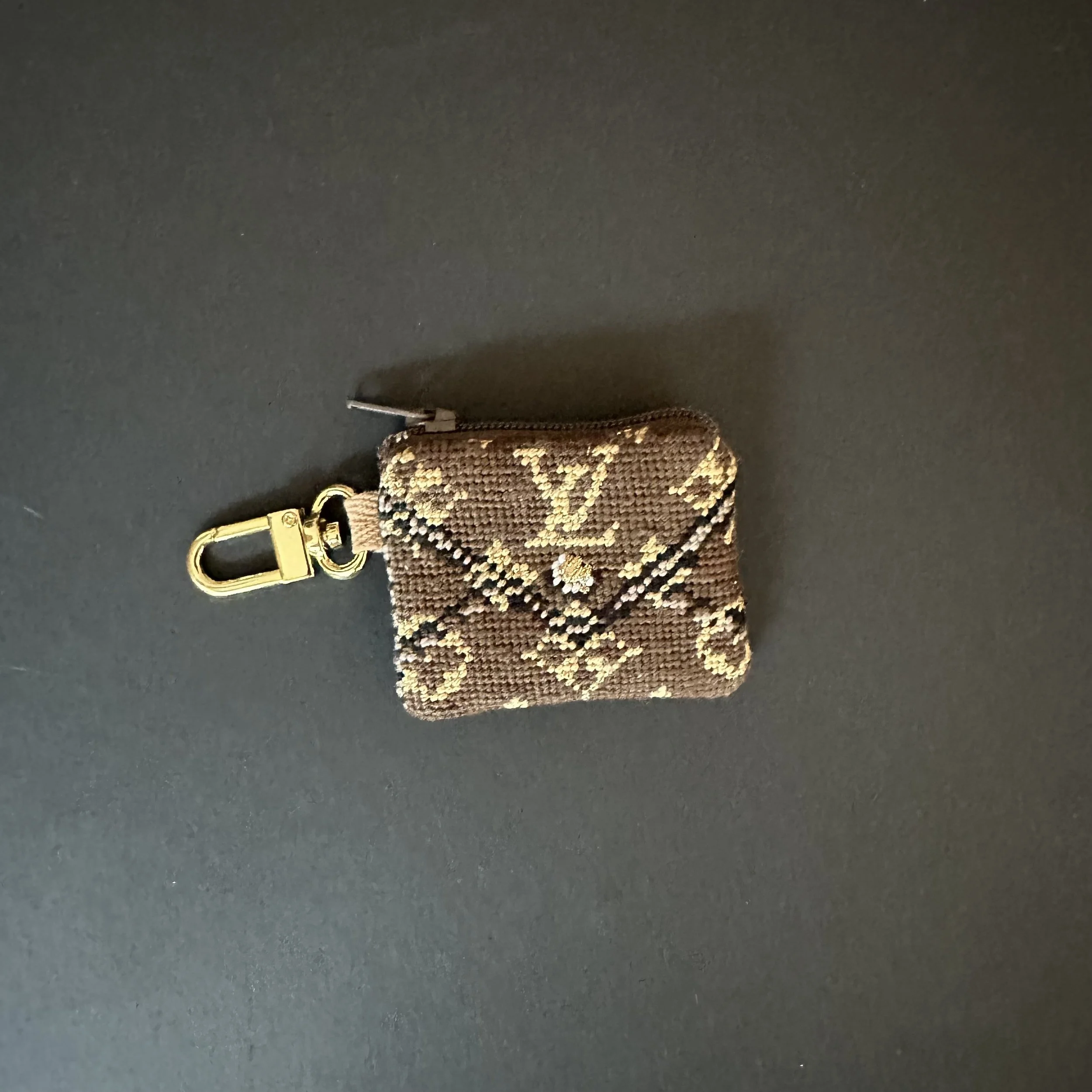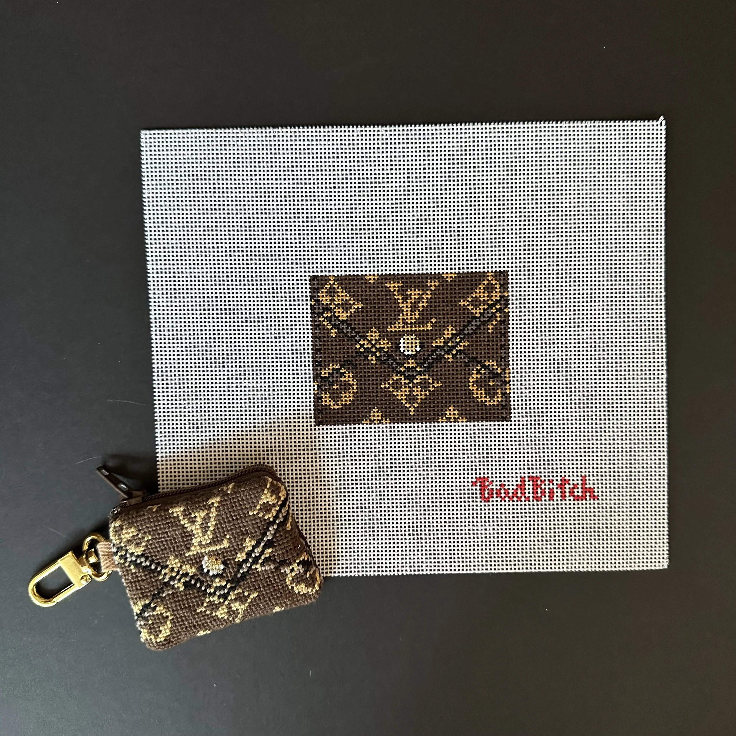 These make the cutest bag charms or key fobs finished with a zipper and a clip - a place to store your ear buds, extra needlepoint needles and threaders…anything you can dream of you can stash in these! There are so many fun places to hang these cuties from but they can also make perfect ornaments or door hangs for the luxury handbag lover in your life or a gift to yourself!